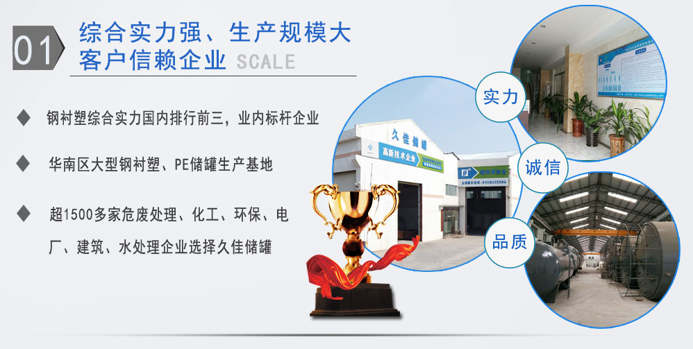 東莞市久佳防腐設(shè)備有限公司是華南地區(qū)大型規(guī)模的防腐環(huán)保儲(chǔ)存設(shè)備制造廠家,公司生產(chǎn)廠房達(dá)8000余平方米,集研發(fā)、生產(chǎn)、銷售于一體,有一支技術(shù)精湛、設(shè)計(jì)能力強(qiáng)的專業(yè)隊(duì)伍。國內(nèi)領(lǐng)先的生產(chǎn)工藝和完善的檢測(cè)設(shè)備,為產(chǎn)品提供了優(yōu)良的保證。產(chǎn)品廣泛應(yīng)用于石化、環(huán)保、釀造、水處理、化工、醫(yī)藥、食品、煉油、發(fā)電等行業(yè),精益求精,品質(zhì)久佳!